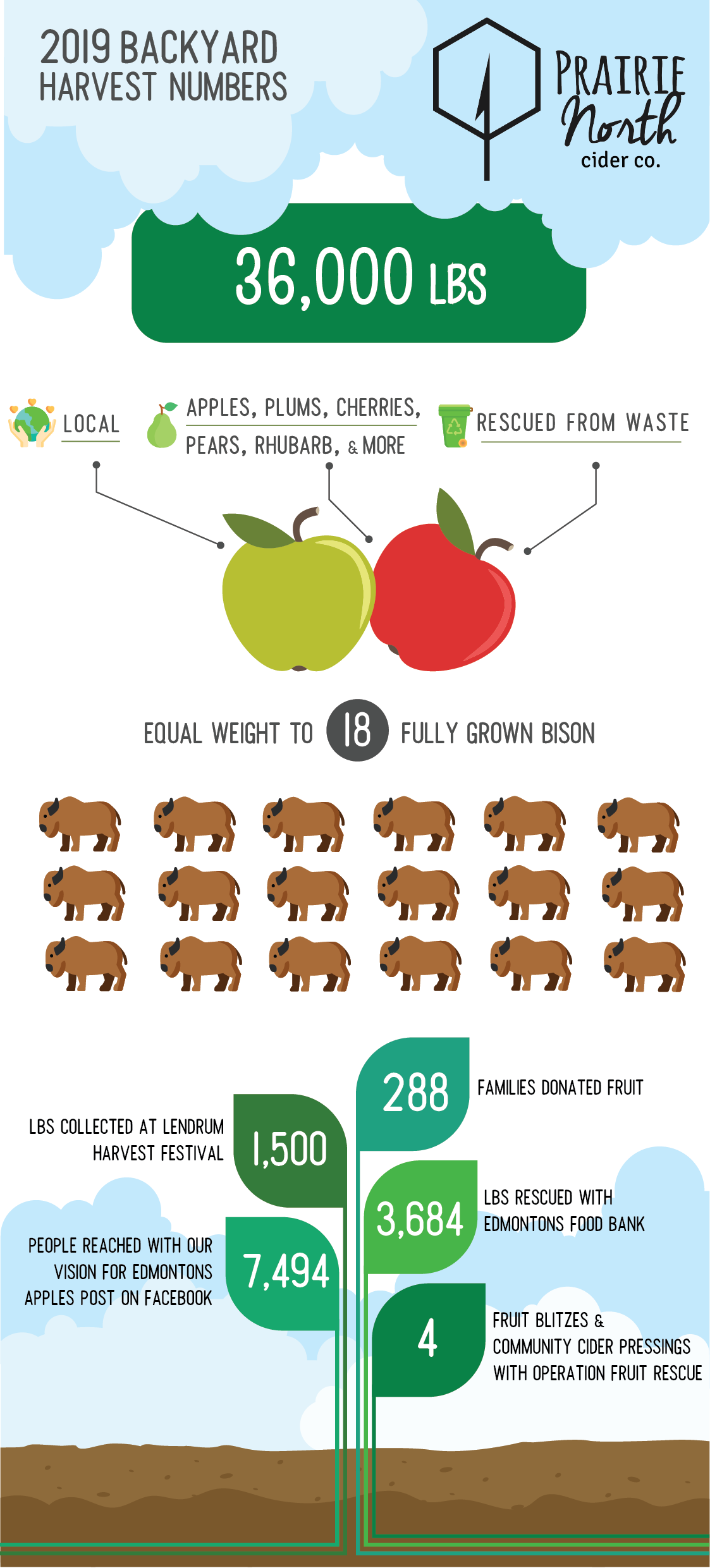 I designed this infographic for Prairie North Fruit Co. to celebrate the successful harvest season where we rescued 36,000 lbs of fruit that normally would end up in the landfill and redirected it to local non-profits.